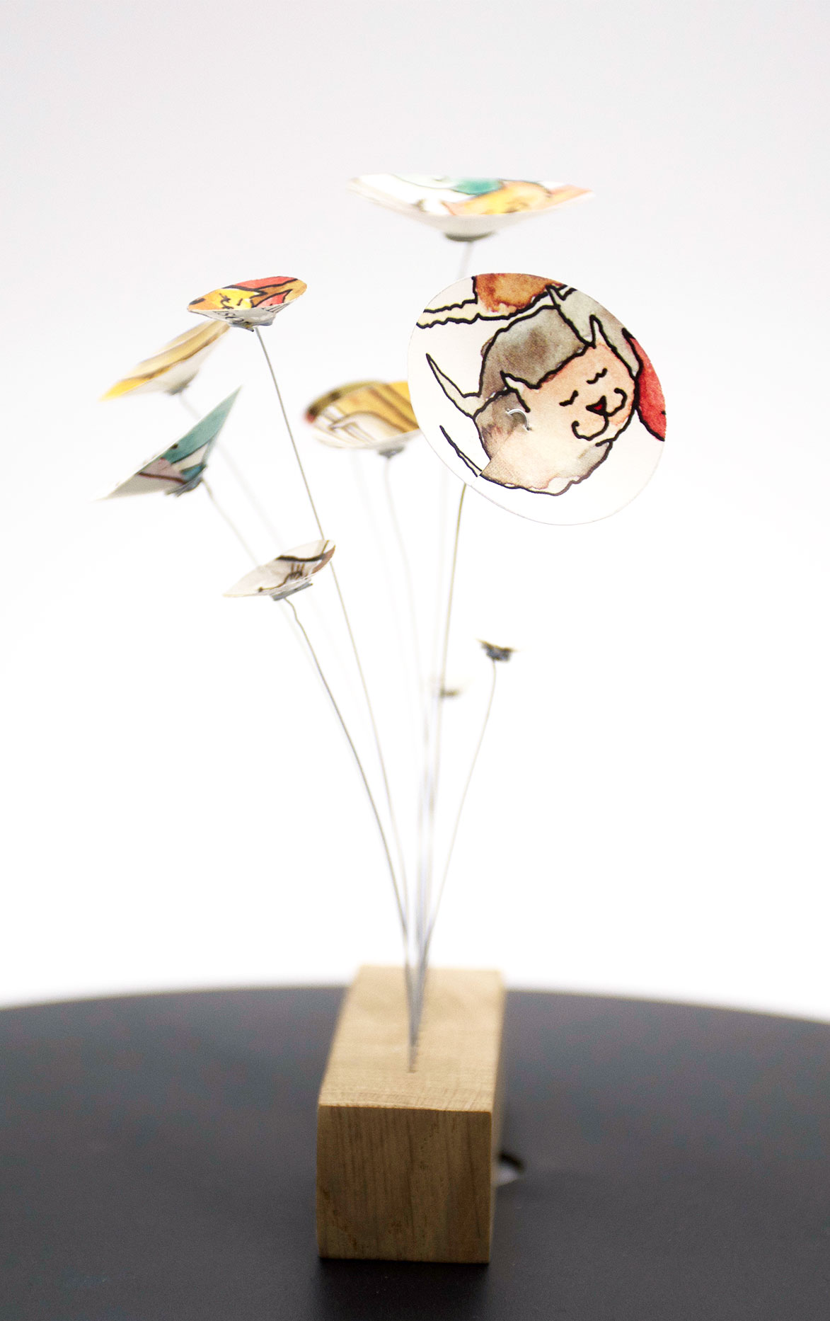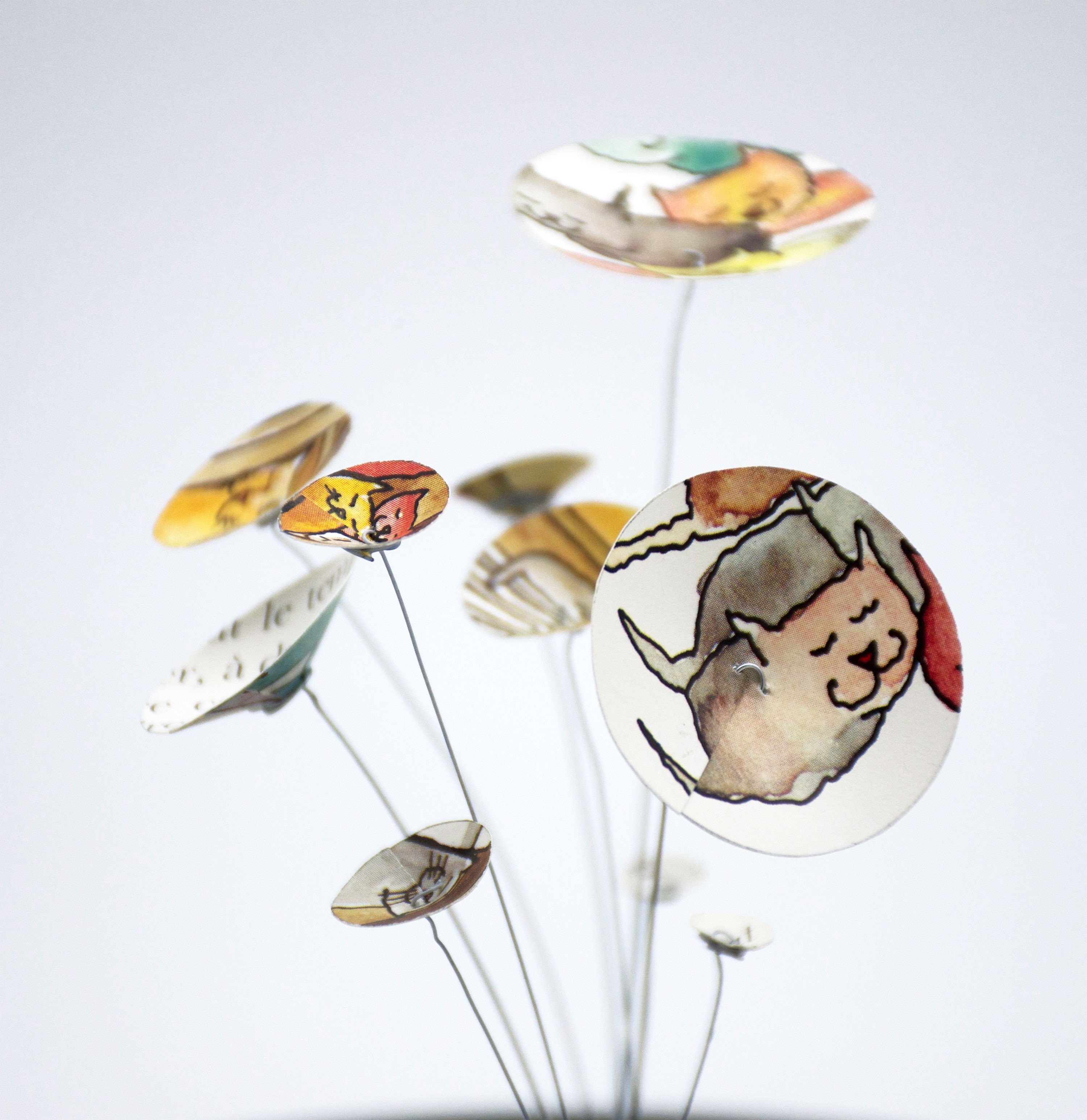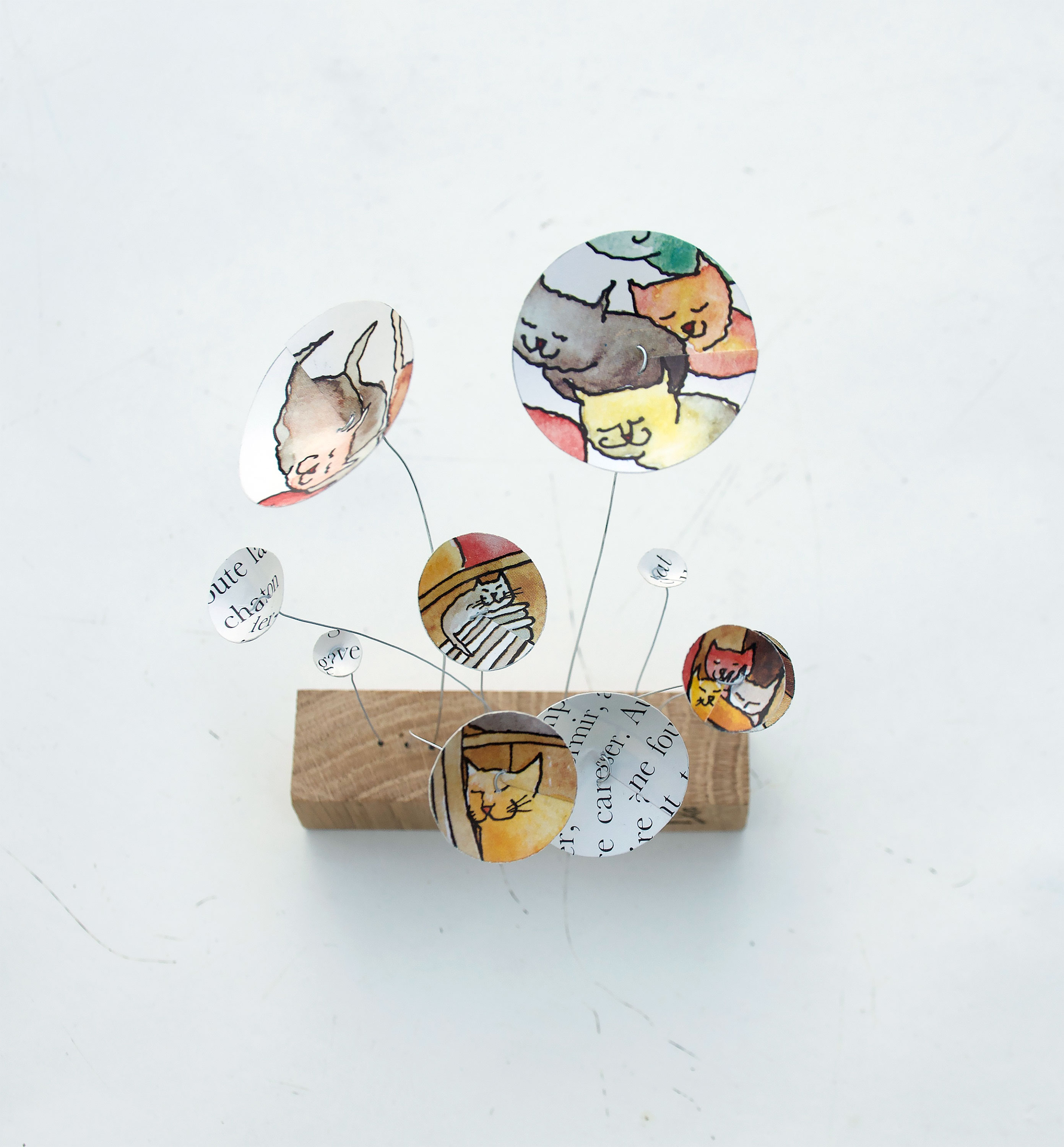 Ce mini papier jardin est la version miniature et colorée d’un singulier « arbre à chats », comme une allée de plantes dont les feuilles sont de joyeux chatons en balade.