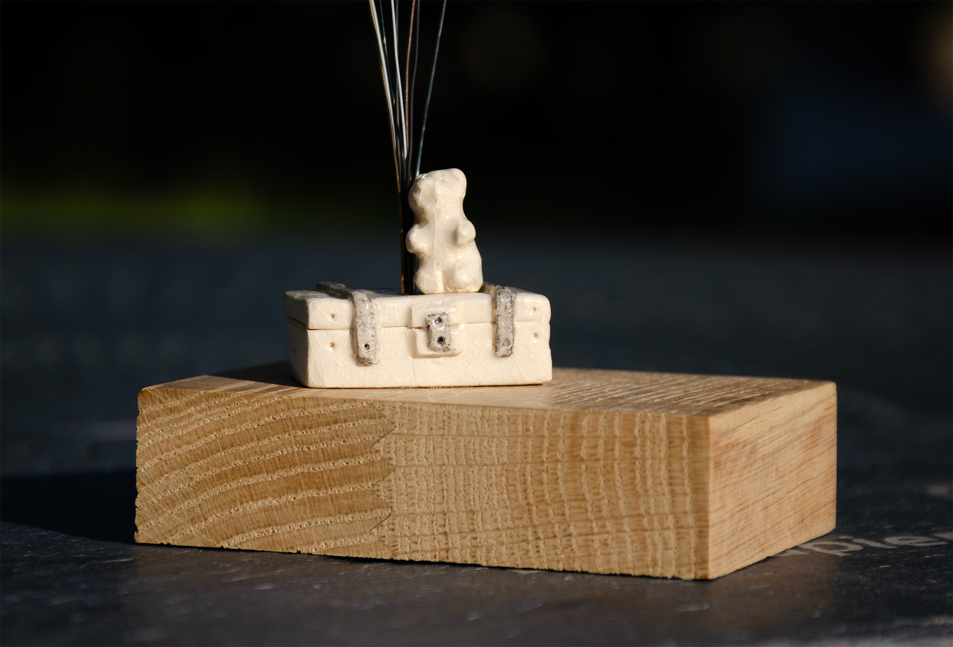 Sur des socles en bois, agrémentés ou non de sujets originaux en argile émaillés, de 85 mm (L) pour une hauteur d’environ 200 mm suivant les papiers jardins ici présentés.